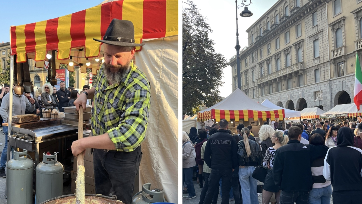 Previtali star ai Mercatanti: tutti in coda davanti alla sua polenta (e per un selfie con lui)