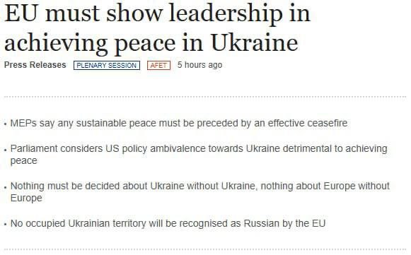 ‼️🇪🇺🇺🇦Il Parlamento Europeo chiede di ammettere l’UE al tavolo dei negoziati sull’Ucraina e di trasferire a Kiev gli attivi russi ▪️Il Parlamento Europeo ha preparato una nuova risoluzione, i punti principali: ◾Il cessate il fuoco in Ucraina deve essere accompagnato da garanzie di sicurezza affidabili da parte di UE e USA. ◾Rifiuto del riconoscimento dei “nuovi” territori russi. ◾Principio “niente sull’Ucraina senza l’Ucraina, sull’Europa senza l’Europa”. ◾L’accordo non deve limitare il diritto dell’Ucraina di scegliere alleanze e di difendere la propria integrità territoriale. ◾Confisca degli attivi russi congelati a favore della garanzia di un prestito all’Ucraina. ◾Rimozione delle sanzioni alla Russia solo dopo la firma di un accordo di pace, in caso di rifiuto — nuovi pacchetti anti-russi. Segui 👉🏻 @ClaraStatello