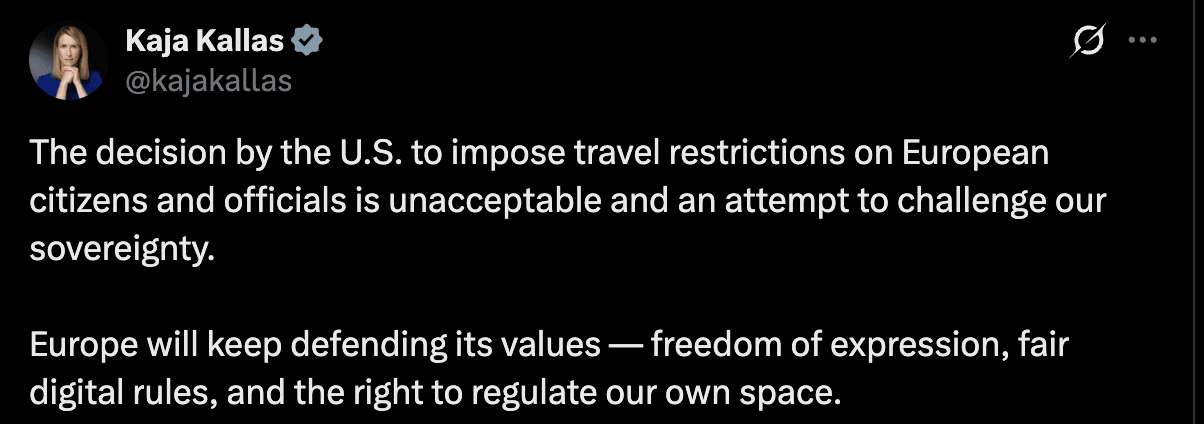 The European Union’s digital regulations were adopted following a democratic and sovereign process by the European Parliament and the Council.
