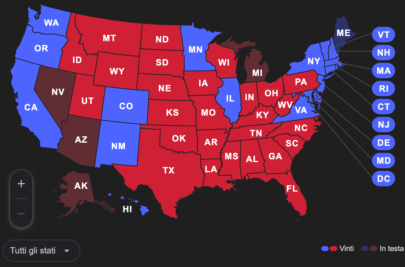 Il paese è chiaramente spaccato in due e sicuramente, nonostante l’indiscutibilmente schiacciante vittoria di Trump, sono lontani i tempi dove gli americani si riconoscevano nel loro Presidente indipendentemente dal fatto che lo avessero votato o meno.