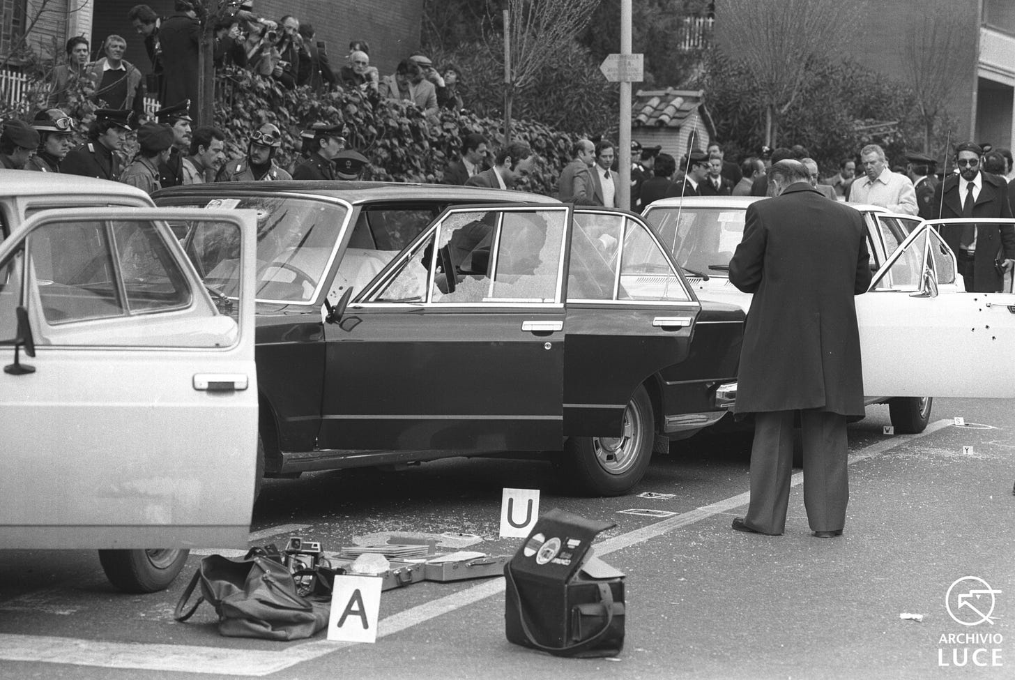 Perché due precisioni di tiro diverso, così evidenti? Guardate le fotografie, l’Alfetta di scorta è tutta sforacchiata di proiettili, la 130 non ha colpi sulla carrozzeria, come se a tirare contro di lei sia stata una mano diversa da quella che ha reso l’Alfetta un colabrodo e che ha fatto arrivare i proiettili fino al secondo piano del palazzo che stava dall’altra parte della strada.