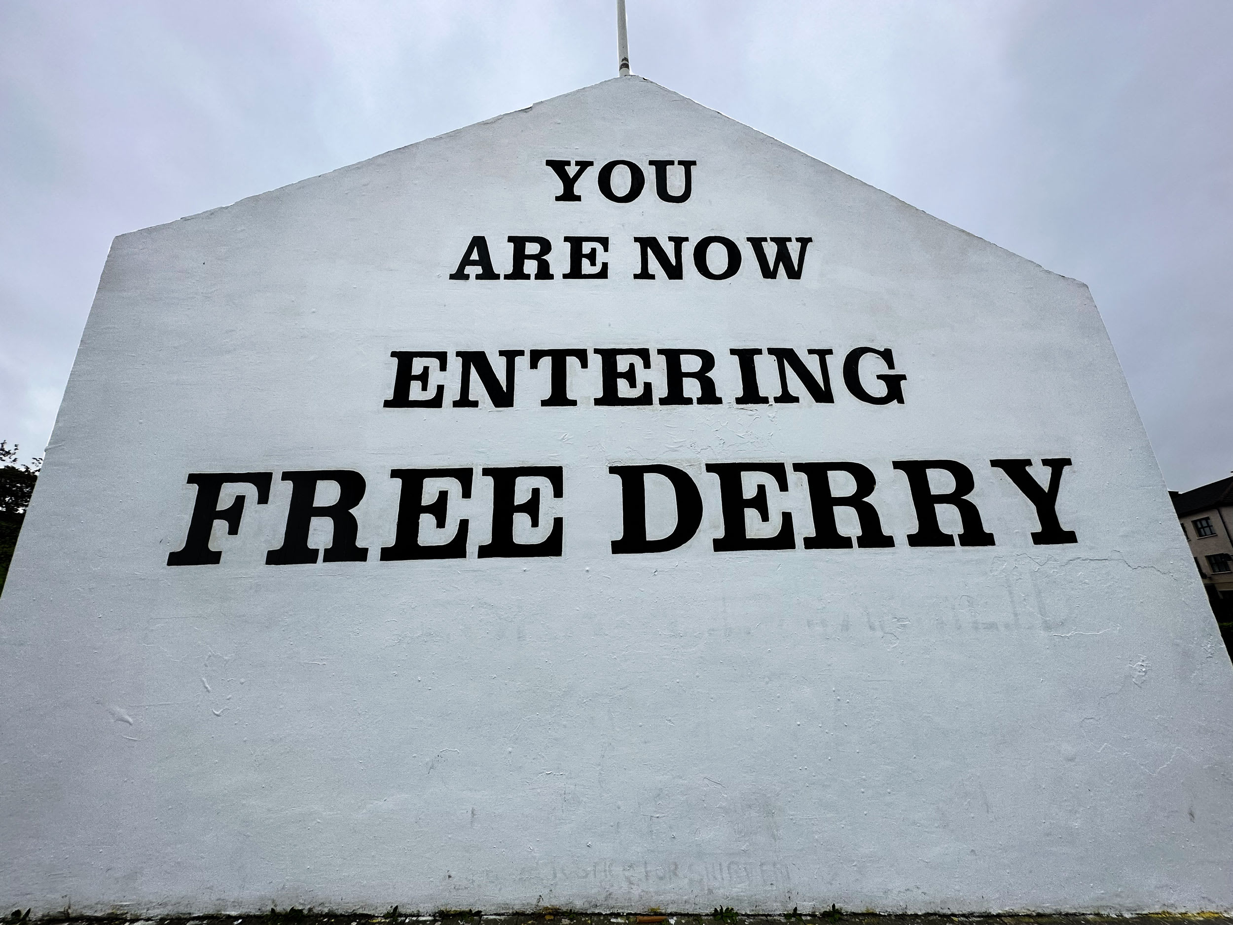 L’aria che si respira a Derri la si capisce non appena si esce da quelle mura di fortificazione, e vagando tra le vie del Bogside ci si imbatte nei murales, nelle scritte e nelle manifestazioni di sostegno all’I.R.A., perché la guerra, da queste parti, non è mai davvero finita.