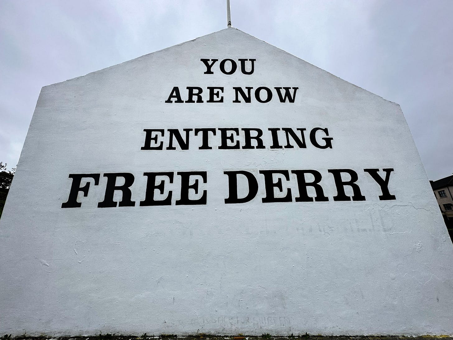 Derry è una bella cittadina dell’Irlanda del Nord, l’unica in tutta l’Irlanda e una delle poche in Europa che conserva ancora per intero le mura di fortificazione, che siccome sono state costruite e pagate dagli inglesi, le hanno anche fatto cambiare nome in Londonderry, nel 1613.